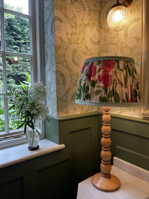 It works well when paired with our bobbin lamp base – hand turned in Yorkshire from sustainable Sycamore wood – the wood has been coated with finishing oil and polished in wax to bring out the natural colour of the wood which the soft tones works well and makes a perfect lamp to complement your home design – fabulous and totally unique for you.