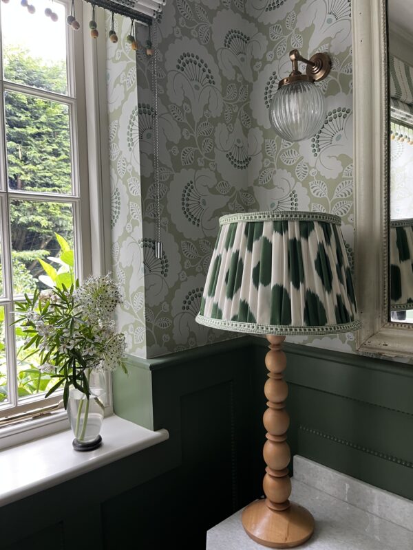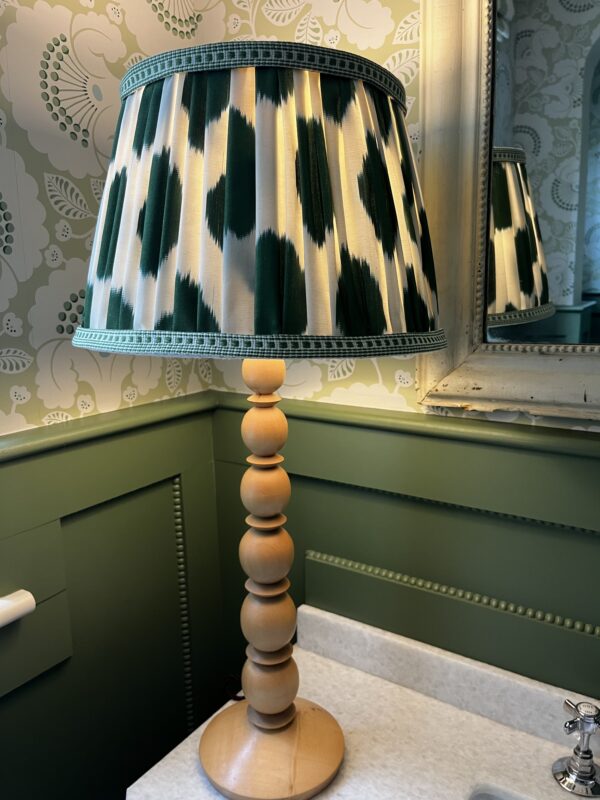 It works well when paired with our bobbin lamp base – hand turned in Yorkshire from sustainable Sycamore wood – the wood has been coated with finishing oil and polished in wax to bring out the natural colour of the wood which the soft tones works well and makes a perfect lamp to complement your home design – fabulous and totally unique for you.