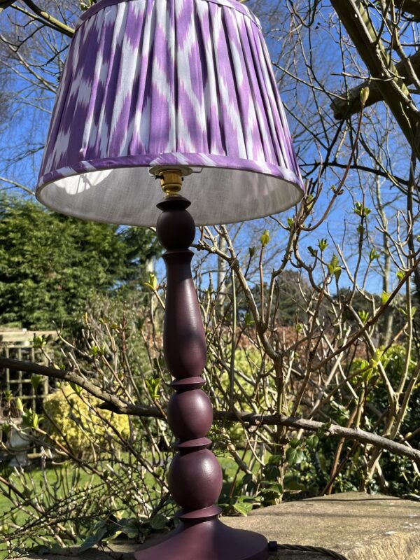 Painted in Farrow & Ball ‘Brinjal’ to produce a stunning lamp that would work with many of the Lovable Lampshade, lampshades to make a perfect lamp to complement your home design – fabulous and totally unique for you.