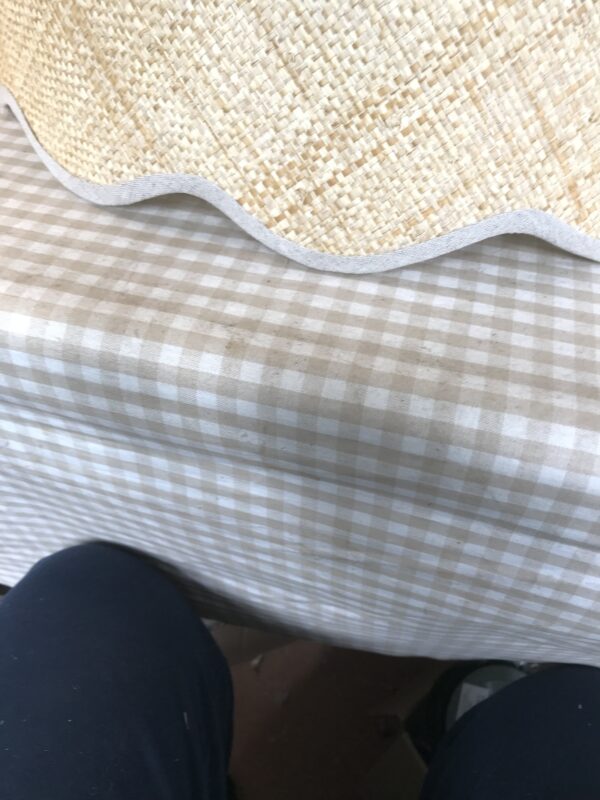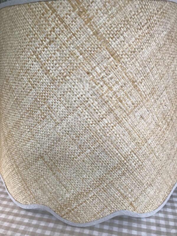 Natural Raffia Scallop edge trimmed with Natural Oatmeal Linen lampshade