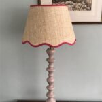 Lovable Lampshades has e a beautiful range of natural, organic raffia lampshades scalloped edge and trimmed with a cerise cotton. Each lamp shade is lined with a cream card to give a soft and warm diffused light.