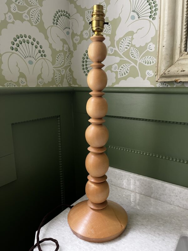 The Lovable Lampshades bobbin lamp base is a unique design – hand turned in Yorkshire from sustainable Sycamore wood.