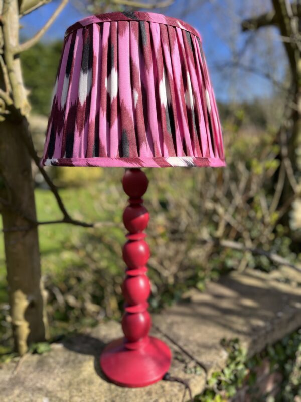Painted in Little Greene ‘Leather’ a pinky, raspberry red colour to produce a vibrant and colourful lamp base that would give a Pop of colour and pair well with many lampshade designs to produce a unique and stunning lamp.