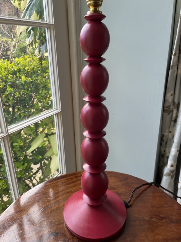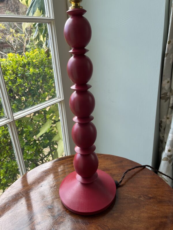 Painted in F & B Theatre Red Bobbin natural wood lamp base