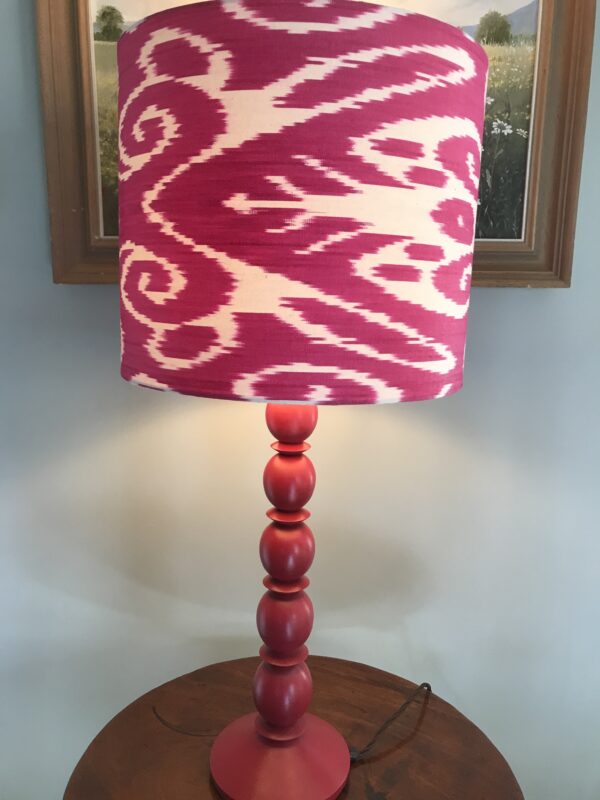 Painted in Farrow & Ball ‘Theatre Red’ a deep rich red colour to produce a vibrant and colourful lamp base that would give a Pop of colour and pair well with many lampshade designs to produce a unique and stunning lamp.