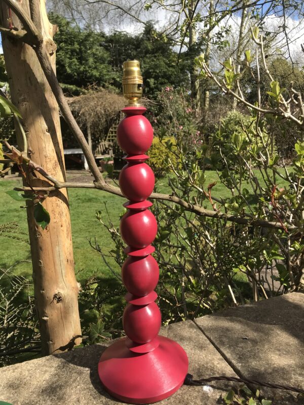 Painted in Farrow & Ball ‘Theatre Red’ a deep rich red colour to produce a vibrant and colourful lamp base that would give a Pop of colour and pair well with many lampshade designs to produce a unique and stunning lamp.